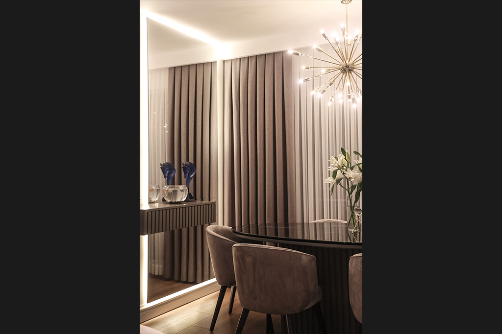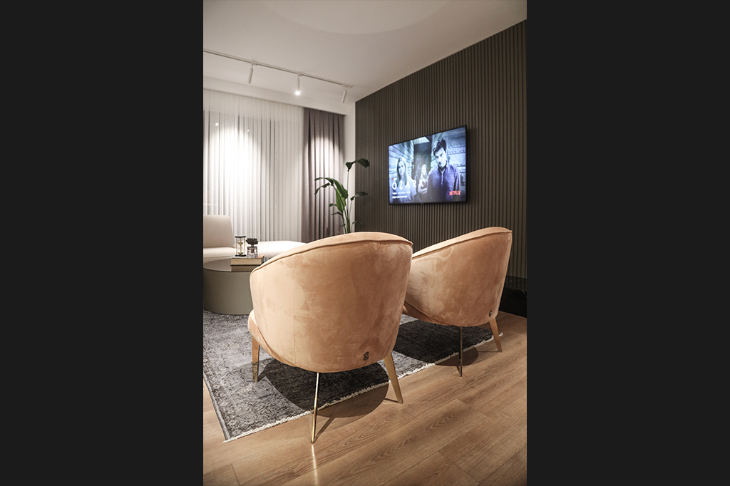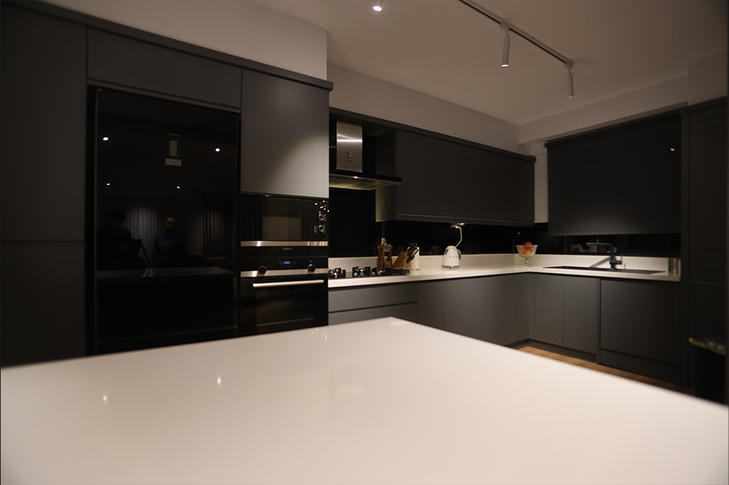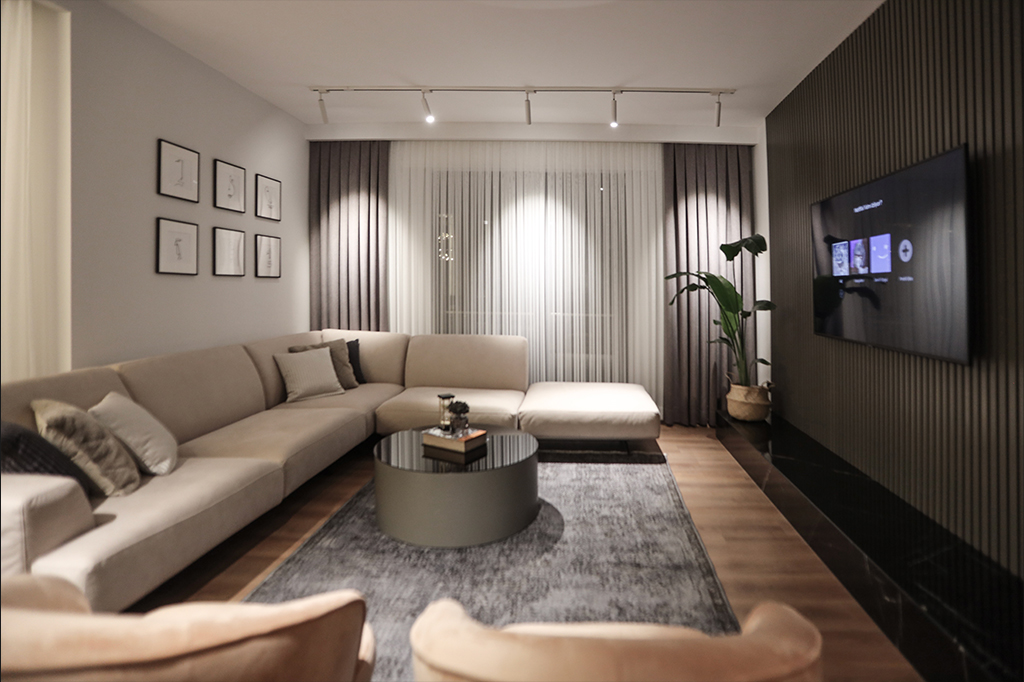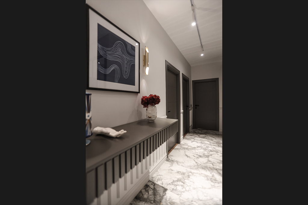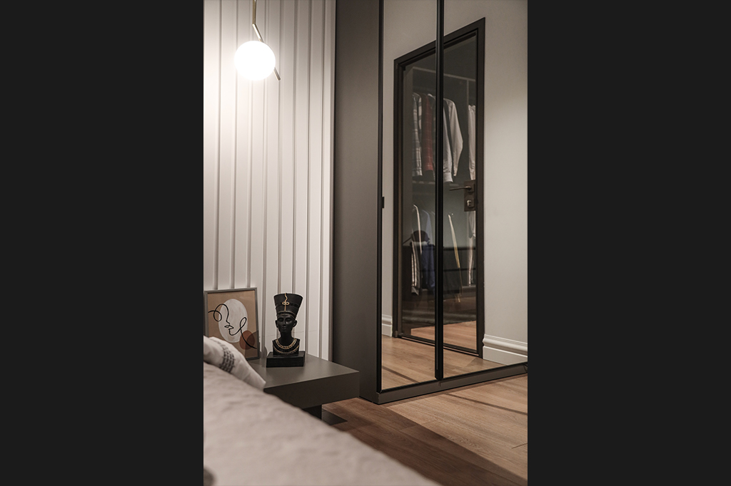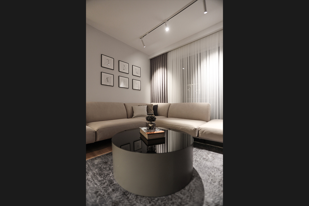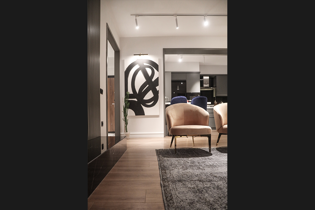 Dingin Renklerin Yanı Sıra Koyu Renklerin de Cesurca Kullanıldığı Bu Daire, Modern Kent Yaşamının İzlerini , İnce Düşünülmüş Mimari Kurgusu Sayesinde Keyifli Bir Yaşam Alanı Sunuyor.
